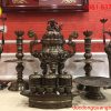 Bộ đỉnh đồng cao 60cm hun xan là bộ đồ thờ đúc thủ công bằng đồng vàng làm kỹ, mẫu rồng phượng nổi trên bầu đỉnh. Bộ gồm 1 đỉnh đồng long phụng, 2 hạc và 2 nến xuống màu hun xanh giả cổ cực đẹp và độc đáo cao 60cm dùng cho bàn thờ từ 1m97-2m17.
